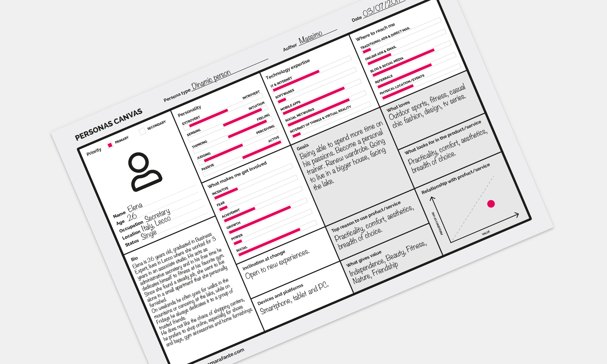 Una delle prime fasi è stata quella di definire la proposta di valore attraverso 4 semplici aspetti chiave. Questo aiuta a rivolgersi direttamente al potenziale utente che può riconoscere il valore del prodotto digitale e i suoi servizi mentre, consente al team di lavoro di prendere decisioni migliori in linea con gli aspetti valoriali definiti.