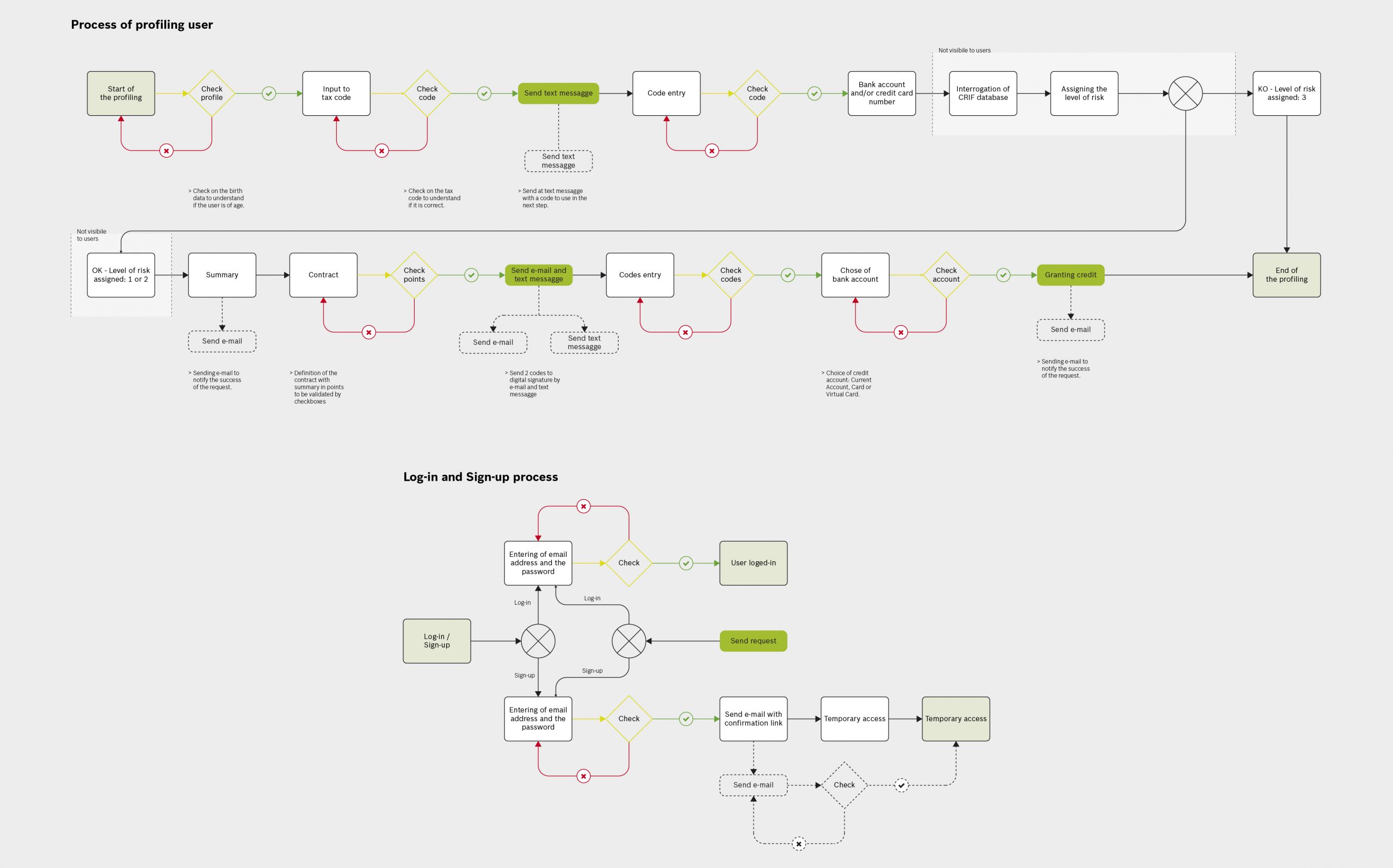Di seguito è riportata uno dei flussi più importanti della piattaforma, ovvero quello di profilazione dell’utente che gli consentirà, una volta creato l’account, di acquistare il prodotto desiderato.
